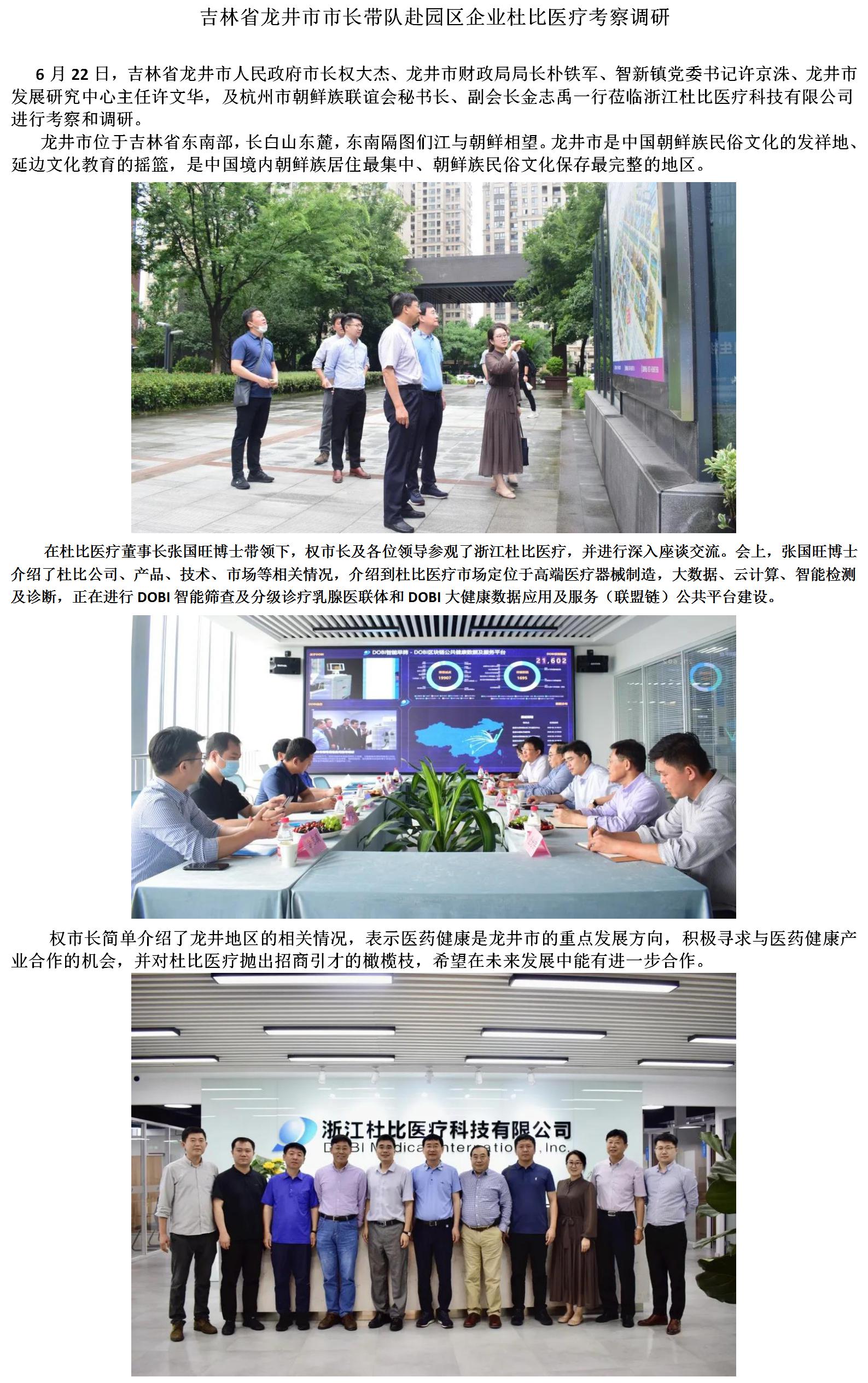 吉林省龍井市市長(zhǎng)帶隊(duì)赴園區(qū)企業(yè)杜比醫(yī)療考察調(diào)研