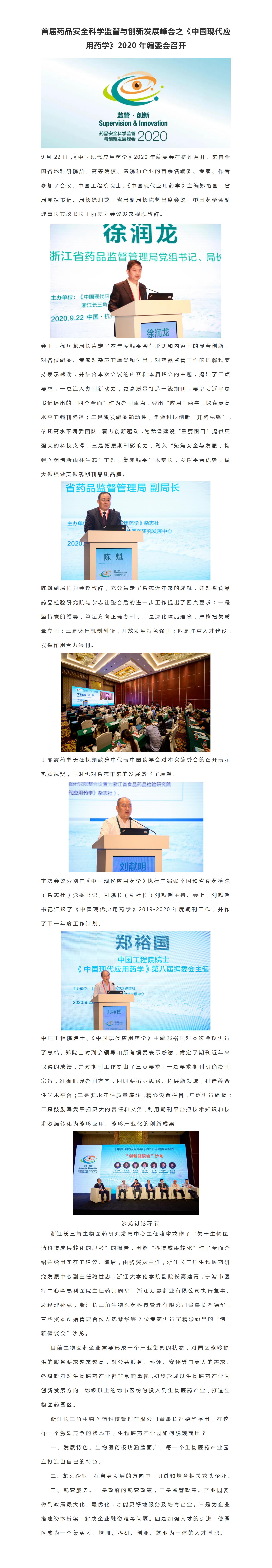 首屆藥品安全科學監(jiān)管與創(chuàng)新發(fā)展峰會之《中國現(xiàn)代應用藥學》2020年編委會召開