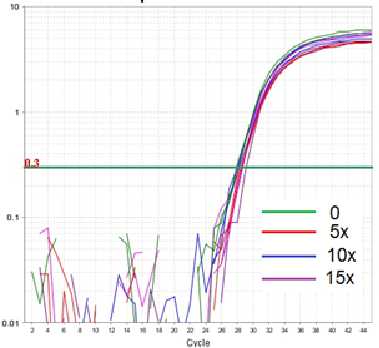 測(cè)定條件:將新配制的預(yù)混料再冷凍-解凍循環(huán)處理15次,并在5、10和15個(gè)循環(huán)處理后對(duì)樣品進(jìn)行PCR測(cè)試。 即使經(jīng)過(guò)15次的凍融循環(huán)也未觀察到酶活性的損失。 因此,一管RT-PCRMasterMix可以在20攝氏度下保存,并解凍15次以備常規(guī)使用。
